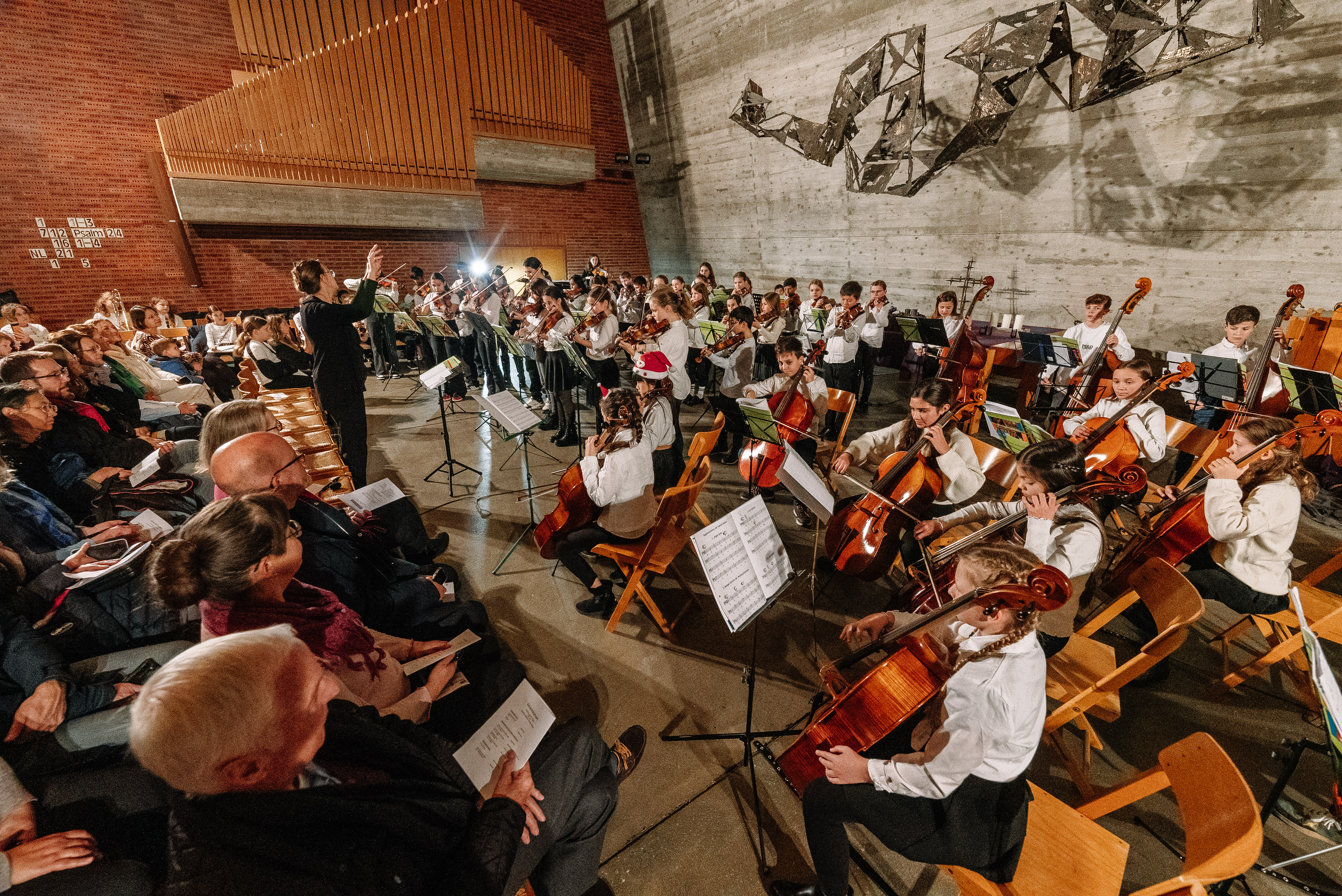 Alle Kinder einer fünften Klasse erlernen hier zum gleichen Zeitpunkt ein Orchesterinstrument.