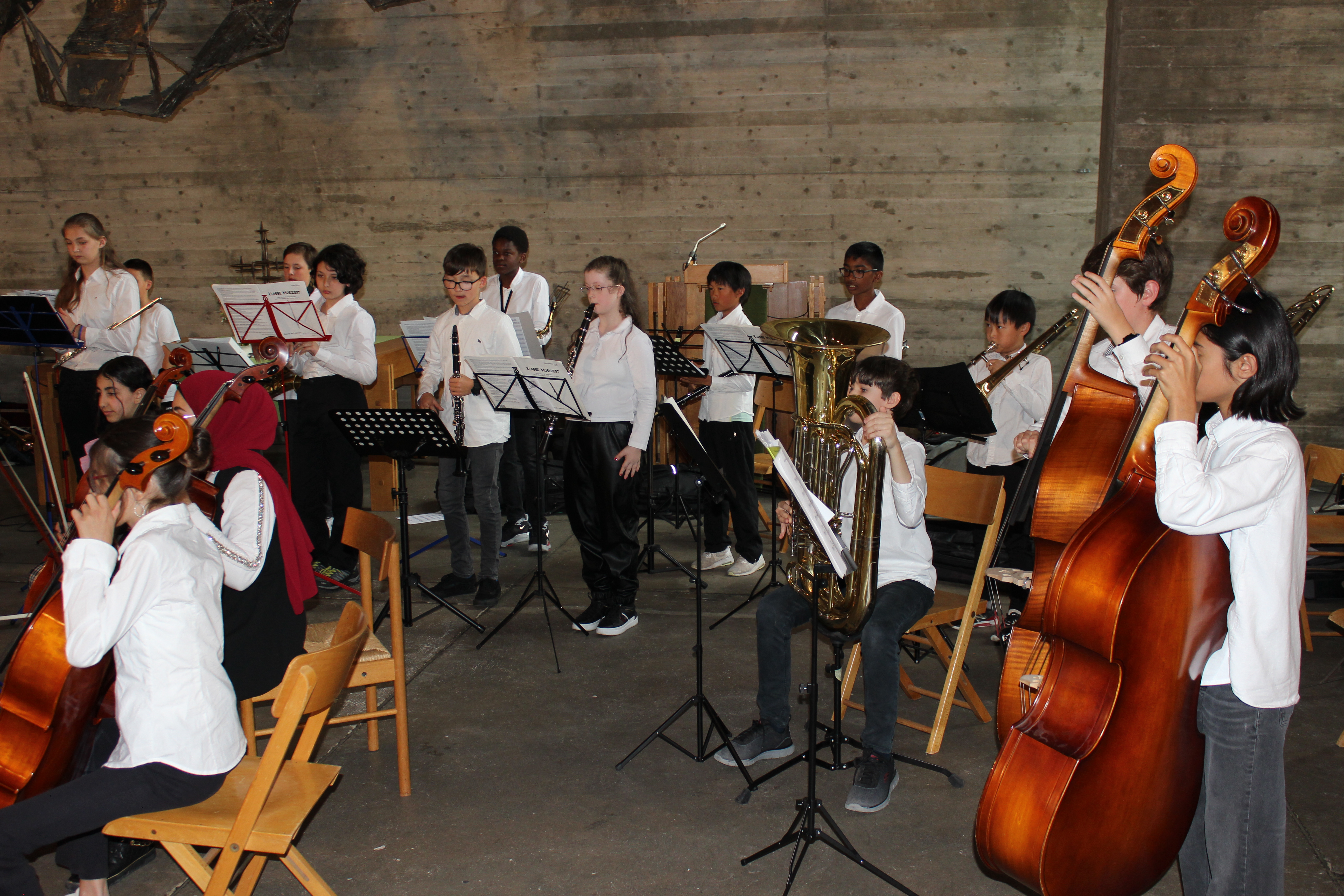 In Klasse 5 und 6 besteht die Möglichkeit, im Rahmen der Instrumentalklasse ein Streich- oder Blasinstrument zu erlernen. Musikalische und künstlerische Darbietungen bereichern unser Schulleben.